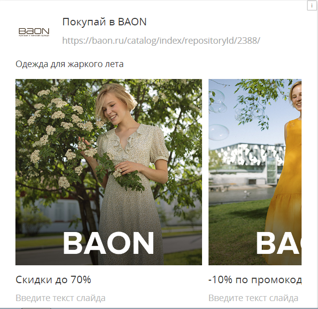 Настроили показ акционных креативов со скидкой 70% на платья: