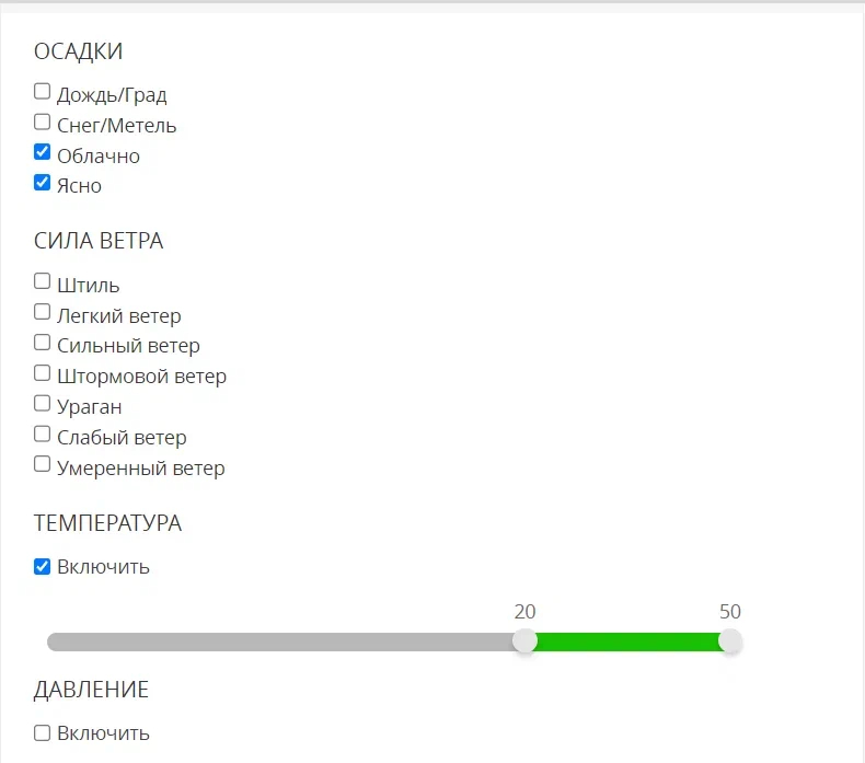 Выставили настройки по погоде: