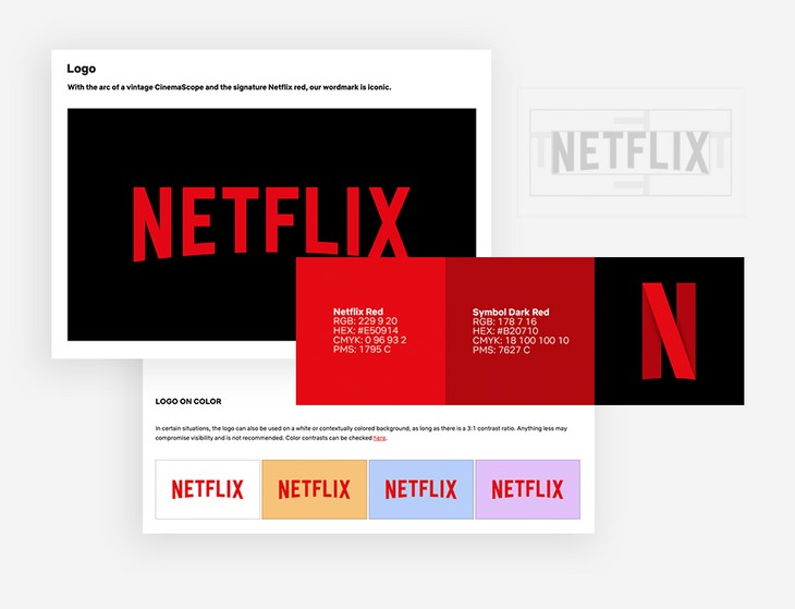 Вступительный звук «та-дам» и узнаваемый логотип притягивают к экранам взгляды примерно 193 миллионов зрителей. Бренд Нетфликса невозможно спутать с другим. Логотип компании выполнен в красном цвете заглавными буквами. По словам дизайнеров Нетфликс, он создает «ощущение премиального кинематографа, так как мы продолжаем устанавливать стандарты для оригинального контента».