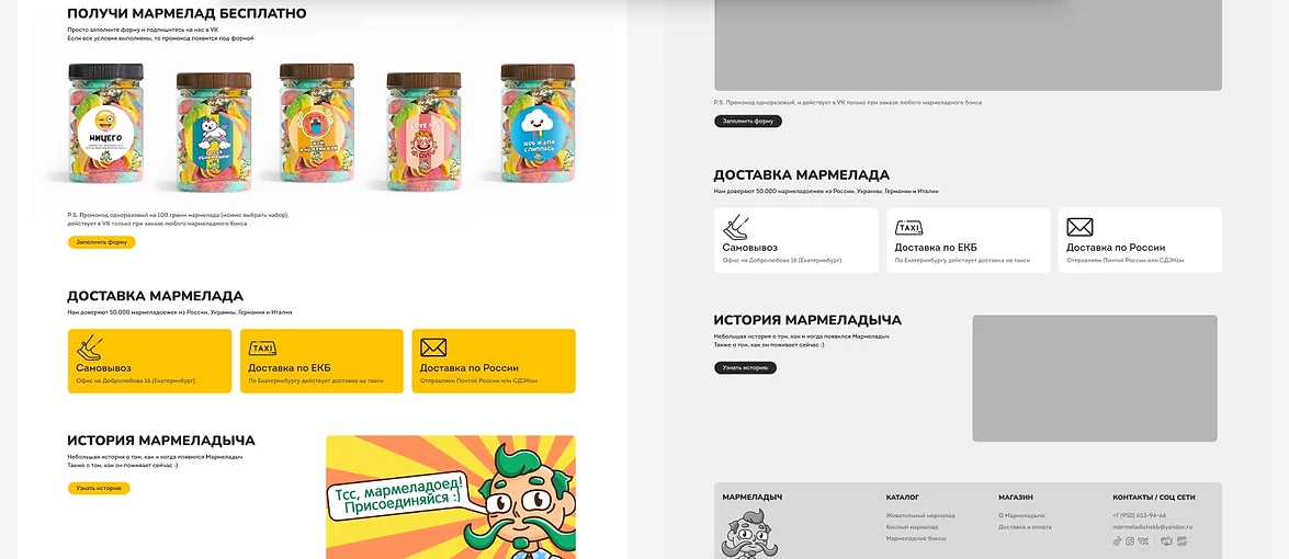 Компания «Мармеладыч» основана в 2019 году в городе Екатеринбург. Покупатели довольны качеством мармелада с оригинальной упаковкой и постепенно рекомендовали магазин знакомым, благодаря чему он становился более популярным. Но пришло время его обновить.