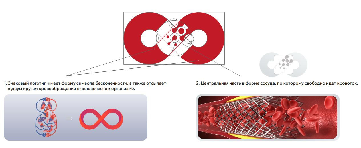 Идея логотипа базируется на концепции васкуляризации - процесса образования кровеносных сосудов в тканях. Дизайн знака включает: