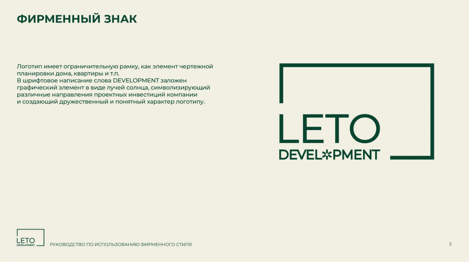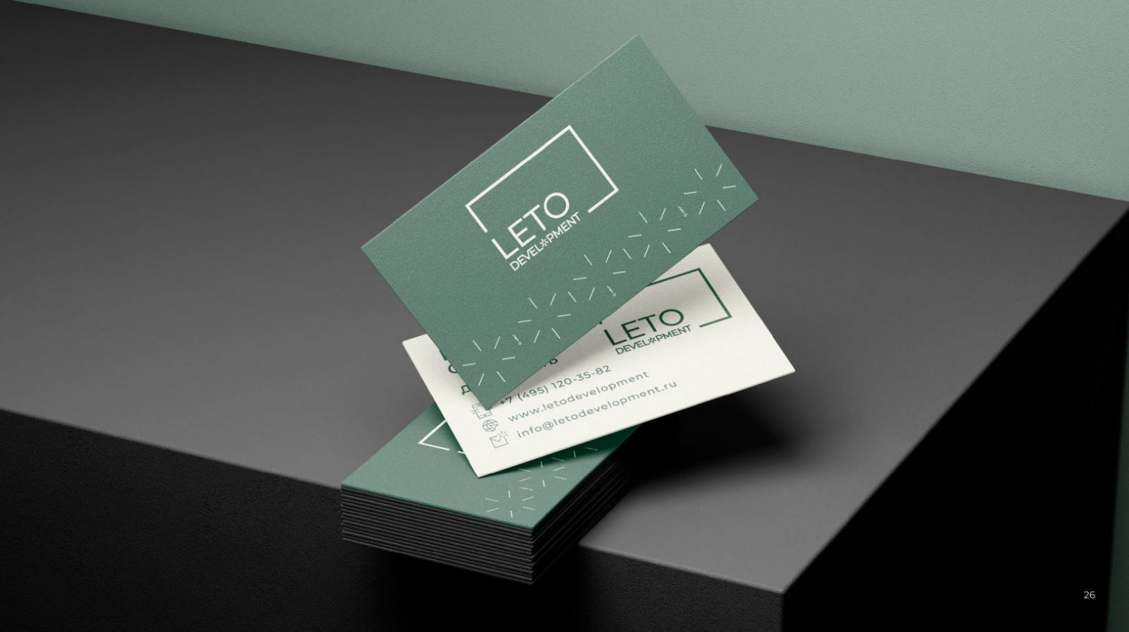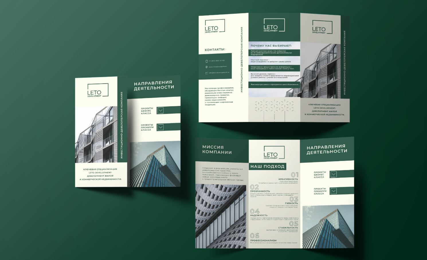 Разработанный фирменный стиль полностью соответствует позиционированию компании и её ценностям. Строгий, но современный дизайн подчёркивает надёжность и инновационность АО «ЛЕТО ДЕВЕЛОПМЕНТ», что особенно важно для работы с бизнес-партнёрами и государственными структурами. Команда брендингового агентства ZAMEDIA реализовала проект в установленные сроки и подготовила фирменный стиль к дальнейшему развитию.