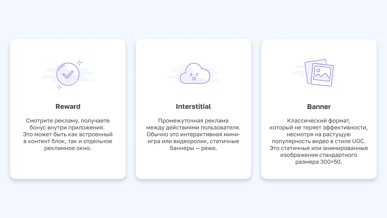 Сегодня каждый из нас ежедневно сталкивается с in-app рекламой: запускаете VPN? играете в мобильную игру? Значит, вы уже знакомы с призывами посмотреть видео или установить новую утилиту. Эти рекламные сообщения могут появляться в разных частях экрана и существуют в трех основных форматах: