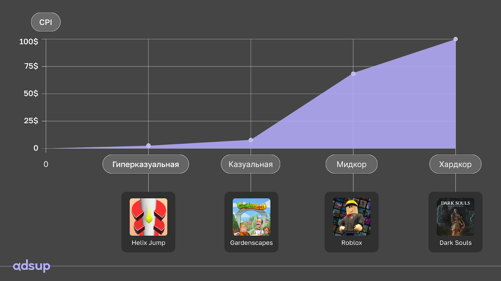 Простая формула: чем сложнее игра и чем больше вы хотите заработать с одного пользователя, тем выше будет стоимость его привлечения. Конкуренция за платежеспособную аудиторию просто зашкаливает.