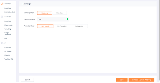 Создание рекламной кампании в Xiaomi Ads состоит из 3 этапов: