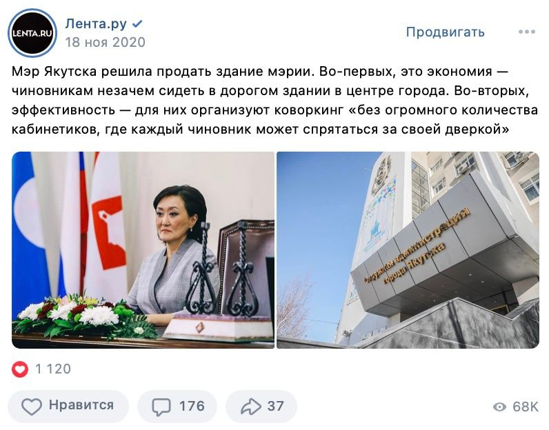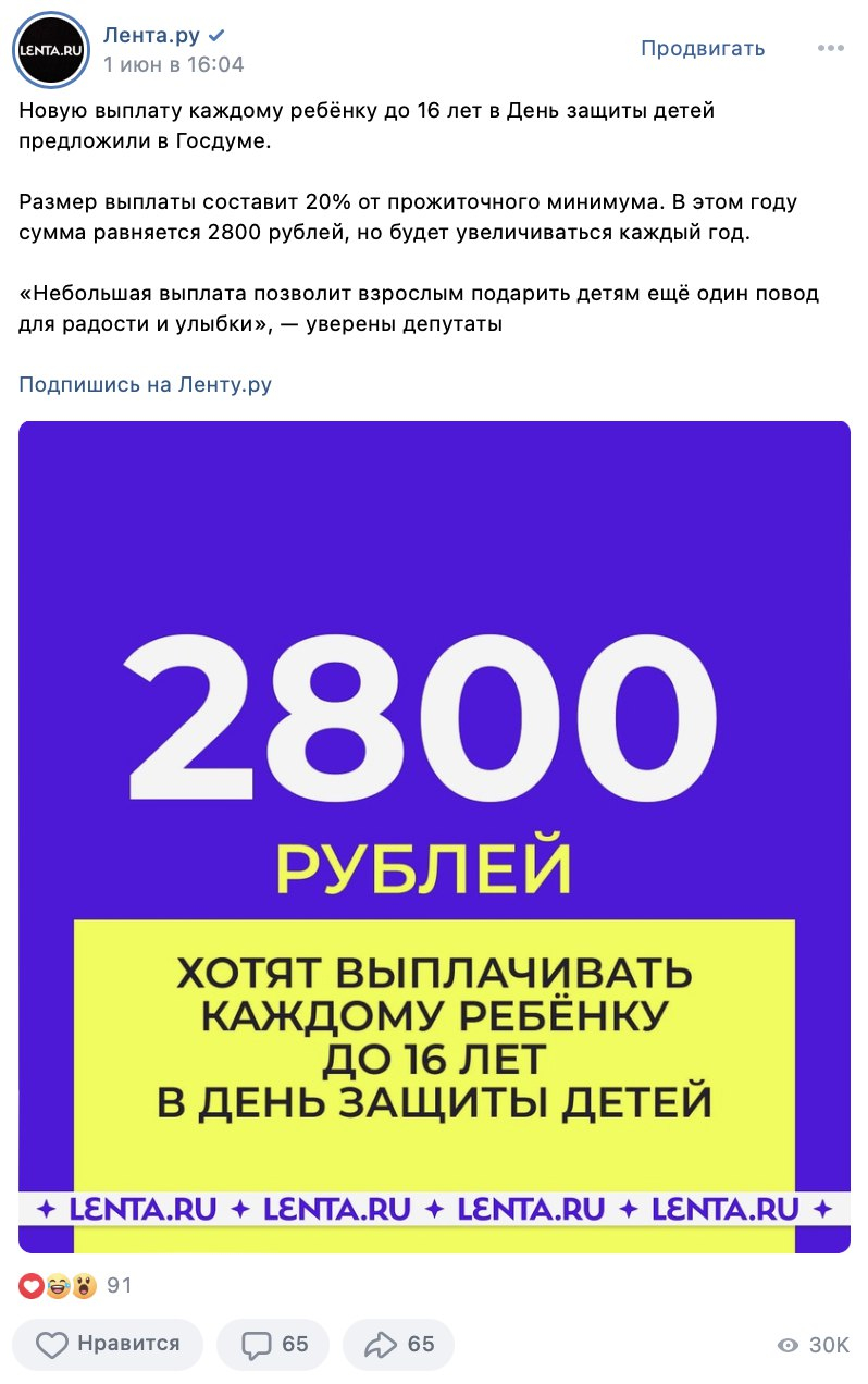 Наше юное соцмедиа включало полный редакционный цикл: поиск информации, её упаковка и публикация на наших площадках целиком, без оглядки на сайт. Аудитория тут же отреагировала: посты без ссылок приносили в среднем в два раза больше охвата, в сравнении с постами-ссылками, а некоторые новости в соцсетях «Ленты.ру» стали выходить раньше, чем на сайте. Супер! Двигаемся дальше.