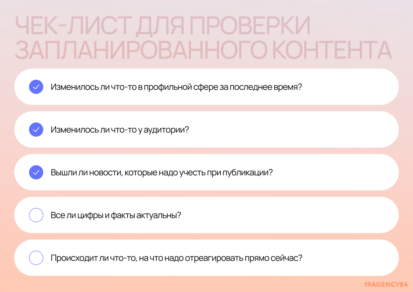 Что делать: ежедневно проверять, что происходит на рынке, в стране и мире. Составлять контент-план максимум на неделю. Если какое-то событие делает запланированную тему чувствительной, корректировать коммуникации.