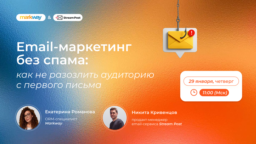 Чтобы научиться правильно выстраивать email-коммуникацию, 29 января в 11:00 подключайтесь к нашему бесплатному вебинару “Email-маркетинг без спама: как не разозлить аудиторию с первого письма”.