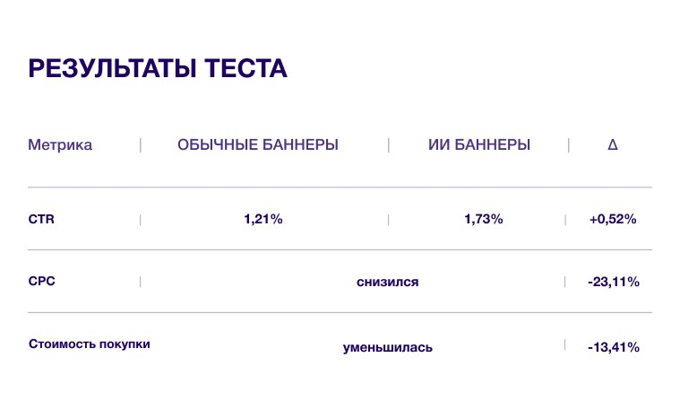 Результаты теста подтвердили потенциал ИИ-креативов для дальнейшего масштабирования. ИИ не заменяет дизайнера, он открывает новые инструменты для экспериментов. Даже в performance-рекламе эмоция может быть драйвером эффективности.