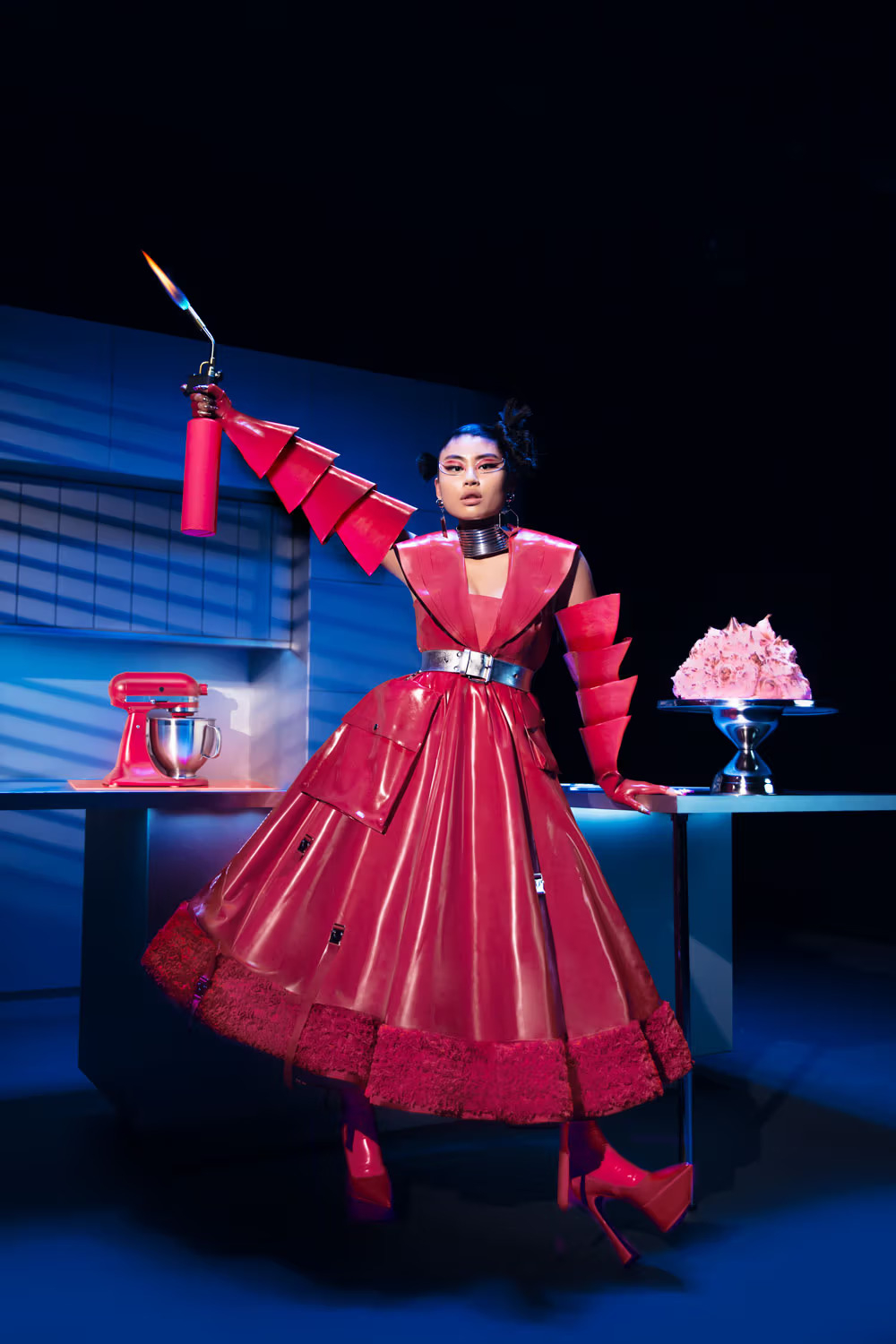 Высокая мода давно ассоциируется с сюрреалистичными концепциями, призванными поразить и эпатировать, но теперь к ней присоединяются и другие сферы. Например, бренд бытовой техники KitchenAid провел необычное дефиле: модели были одеты в платья цвета фуксии, украшенные металлическими деталями кухонной утвари.