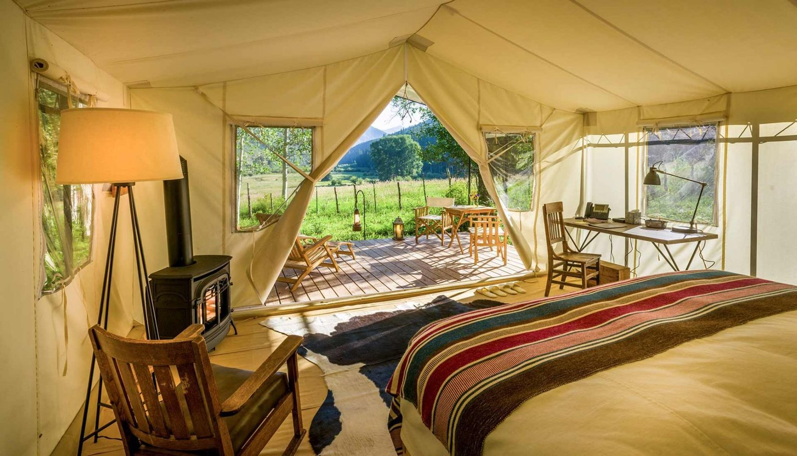 "Нам удается совместить то, что кажется разными мирами, — объясняет она. — Можно наслаждаться прогулкой по лесу, а потом ужинать в ресторане авторской кухни. Жить в палатке, но с кофеваркой и простынями с подогревом".