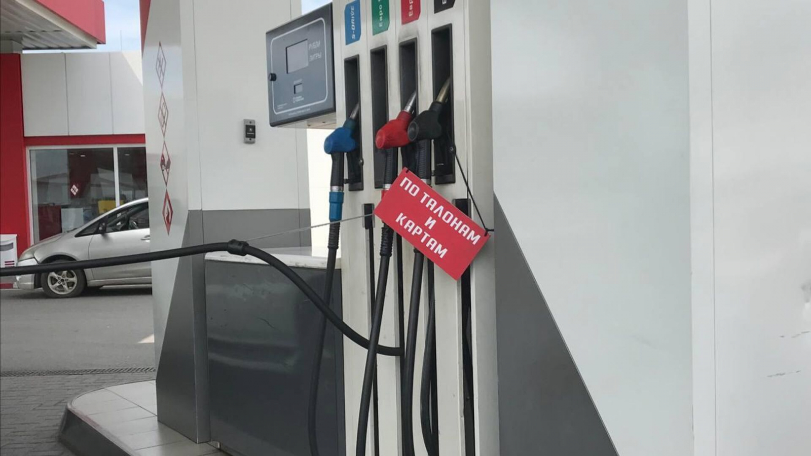 В объявлениях, которые развешаны у колонок, говорится об ограничениях на продажу бензина.