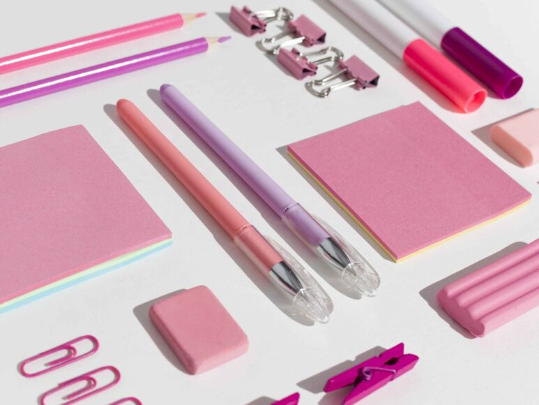 - Цвета. Выбирайте канцелярские товары, которые вам приятны. Например, яркие цвета могут поднимать настроение, а более нейтральные — создают спокойную атмосферу для сосредоточенной работы.