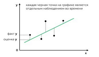 Наилучшее уравнение выбирается так, чтобы линия проходила максимально возможно ближе ко всем точкам с помощью метода наименьших квадратов (МНК). Выше приведено уравнение простой линейной регрессии, т.е. рассматривается влияние только одного фактора. В большинстве же случаев уравнение имеет столько пар b и x, сколько значимых факторов было включено в модель – множественная линейная регрессия.