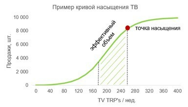 Кривая насыщения может быть более крутой или пологой, иметь точку перегиба и выходить на плато на меньшем или большем объеме – точные параметры этой зависимости отличаются для разных медиа, категорий, брендов и даже креатива. Одно из главных преимуществ эконометрики – можно достаточно уверенно сказать, какой объем размещения в каждом канале нужен, чтобы достигнуть KPI и какой при этом будет ROAS или CPA.
