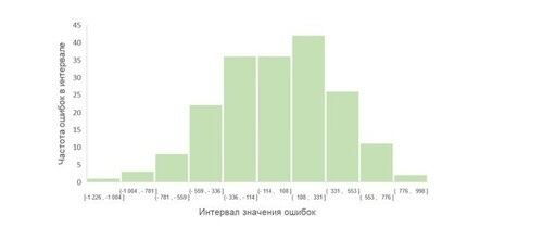 Близость остатков модели к нормальному распределению – гистограмма распределения ошибок похожа на колокол, но допускается умеренная асимметрия.