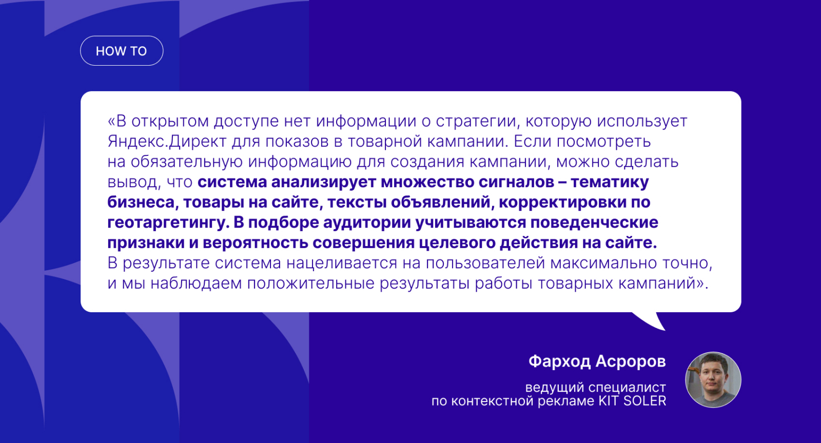 В открытом доступе нет информации о стратегии, которую использует Яндекс.Директ для показов в товарной кампании. Если посмотреть на обязательную информацию для создания кампании, можно сделать вывод, что система анализирует множество сигналов – тематику бизнеса, товары на сайте, тексты объявлений, корректировки по геотаргетингу. В подборе аудитории учитываются поведенческие признаки и вероятность совершения целевого действия на сайте. В результате система нацеливается на пользователей максимально точно и мы наблюдаем положительные результаты работы товарных кампаний.