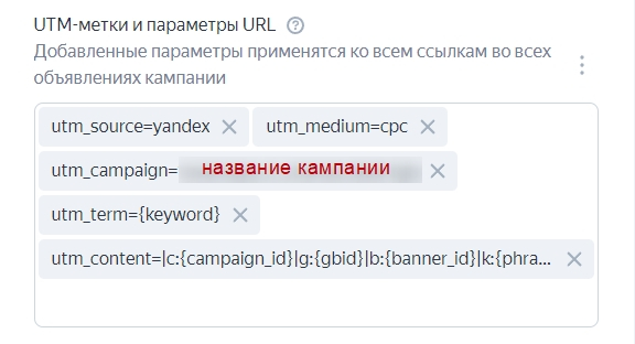 Мы рекомендуем прописывать UTM-метки, чтобы отследить путь пользователя.Среди обязательных – источник, тип трафика и название кампании. Дополнительно можно указать ключевую фразу, тип устройства, вид объявления и регион местонахождения пользователя.