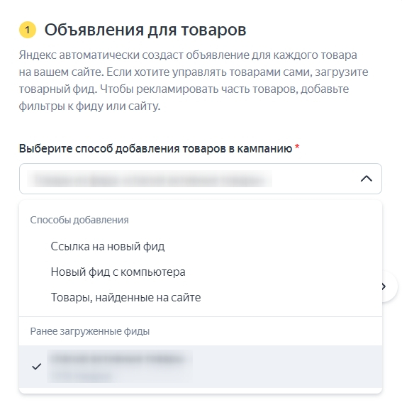 2. Определитесь со способом добавления товаров: фид или контент сайта. Более предпочтительный вариант – фид, так как он содержит более полную и актуальную информацию о товарах.