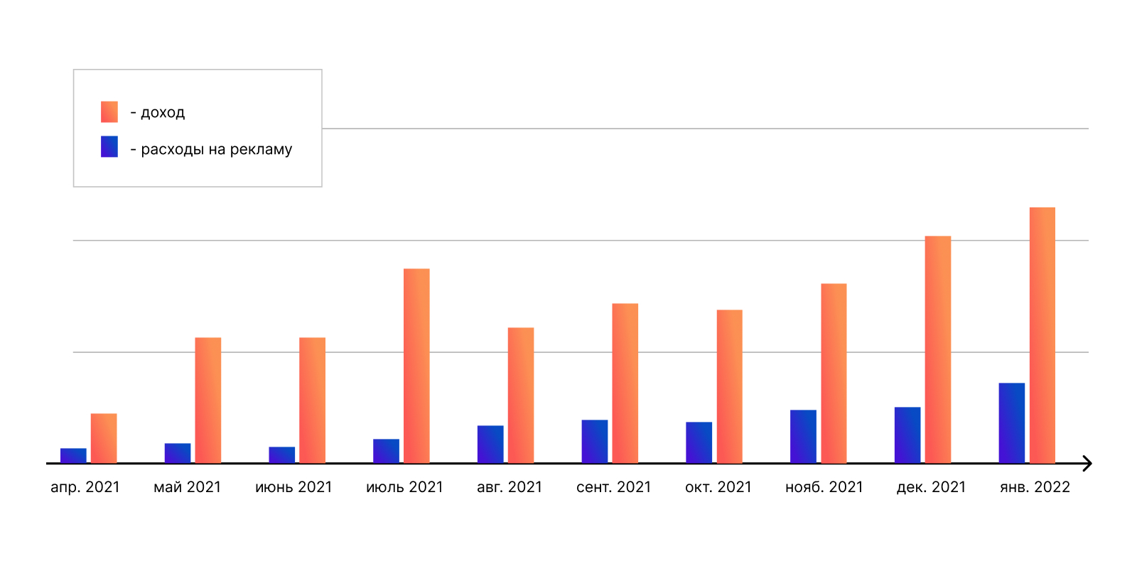 Рост дохода более чем в 2 раза за 10 месяцев при сохранении целевого ДРР.