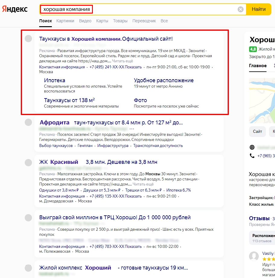 Некоторые рекламодатели могут заниматься недобросовестной конкуренцией. Например, использовать в качестве условия показа ваши брендовые ключевые фразы наряду с употреблением в тексте объявления вашей торговой марки. Мы рекомендуем отслеживать такую активность и незамедлительно обращаться к менеджерам Яндекса и юристам. А пока данное объявление не будет убрано из выдачи, защитить бренд можно с помощью контекстной рекламы по брендовым запросам.