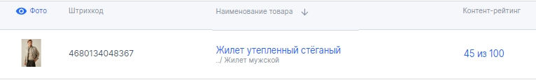 Дополнив все характеристики товара, мы повысили контент-рейтинг карточки с 45 до 92,5.