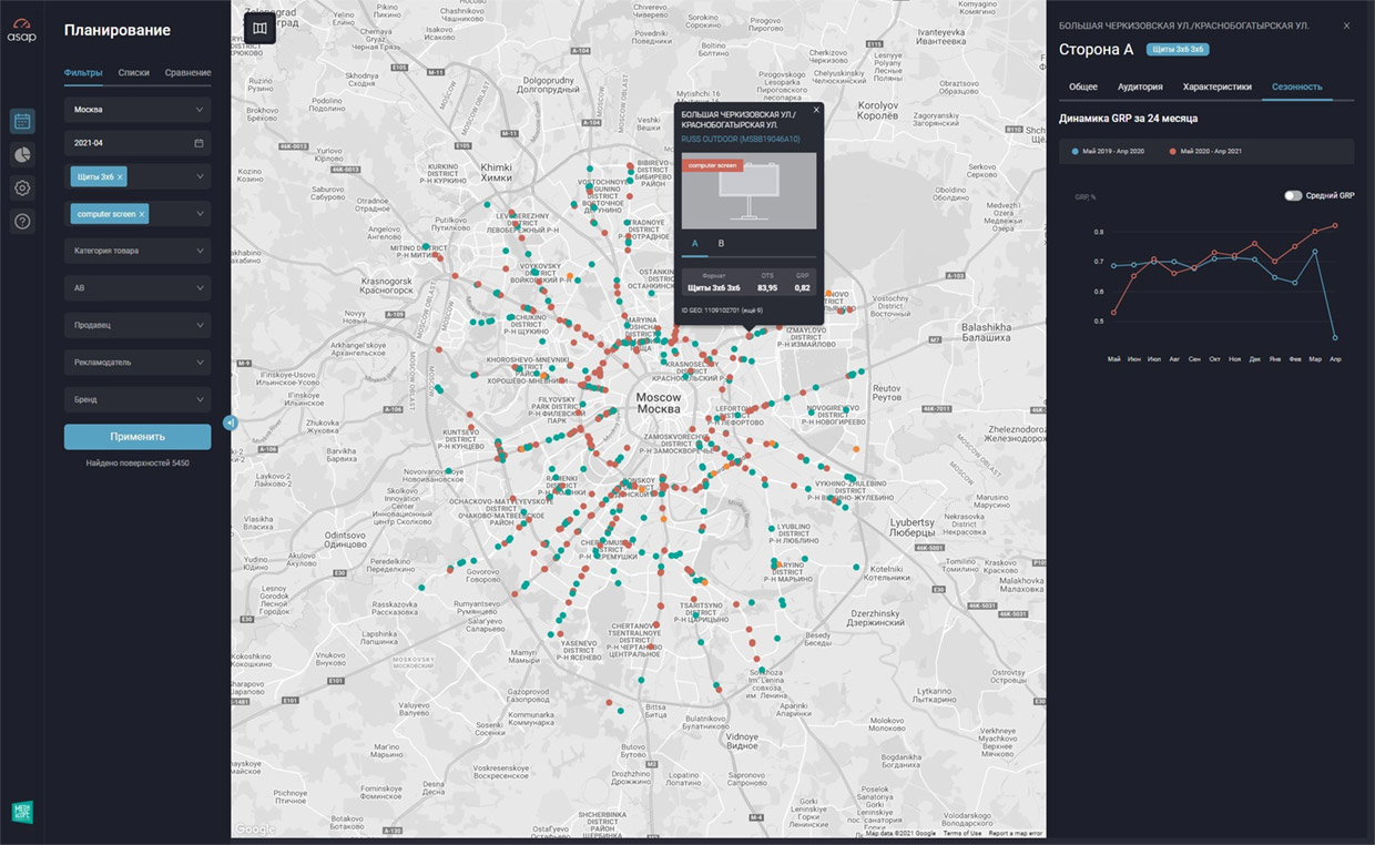 Более релевантными являются данные, полученные непосредственно операторами DOOH рекламных конструкций с помощью системы wi-fi-аналитики или видеоаналитики.