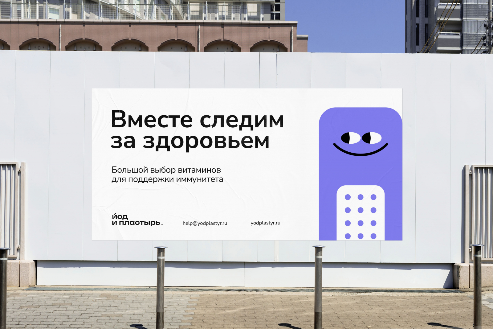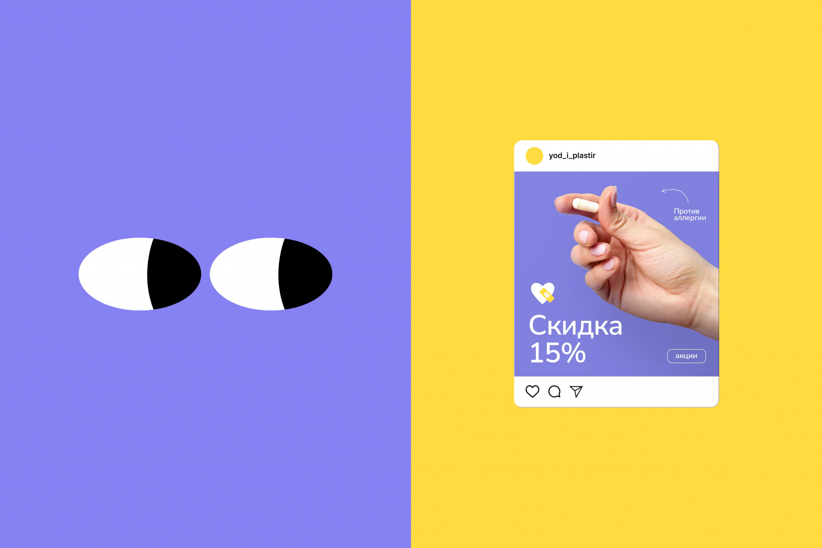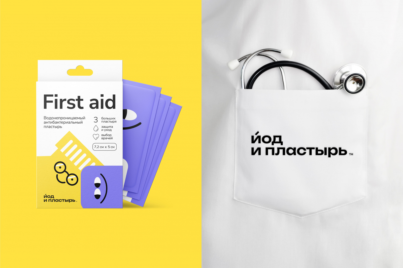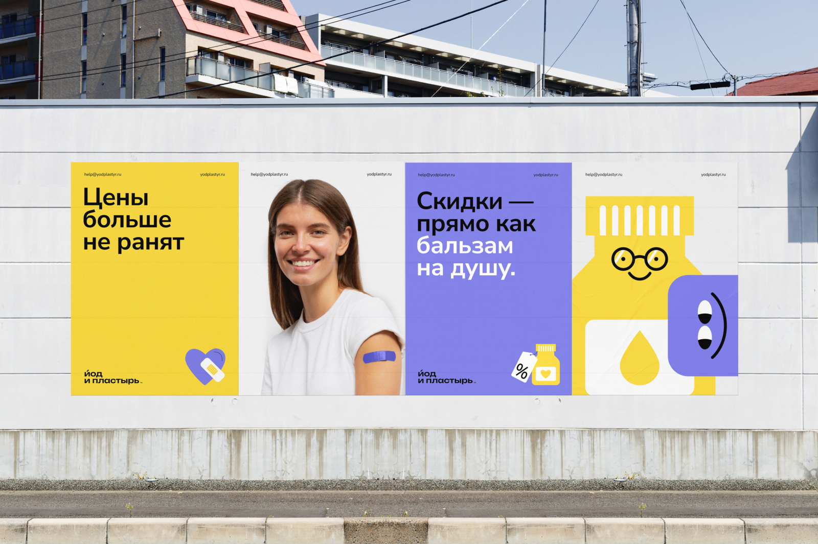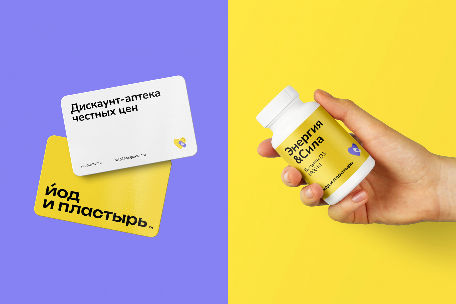 «Йод и пластырь» — дискаунт-аптеки от компании «Здравсервис». Брендинговое агентство «Ферма» разработало фирменный стиль.