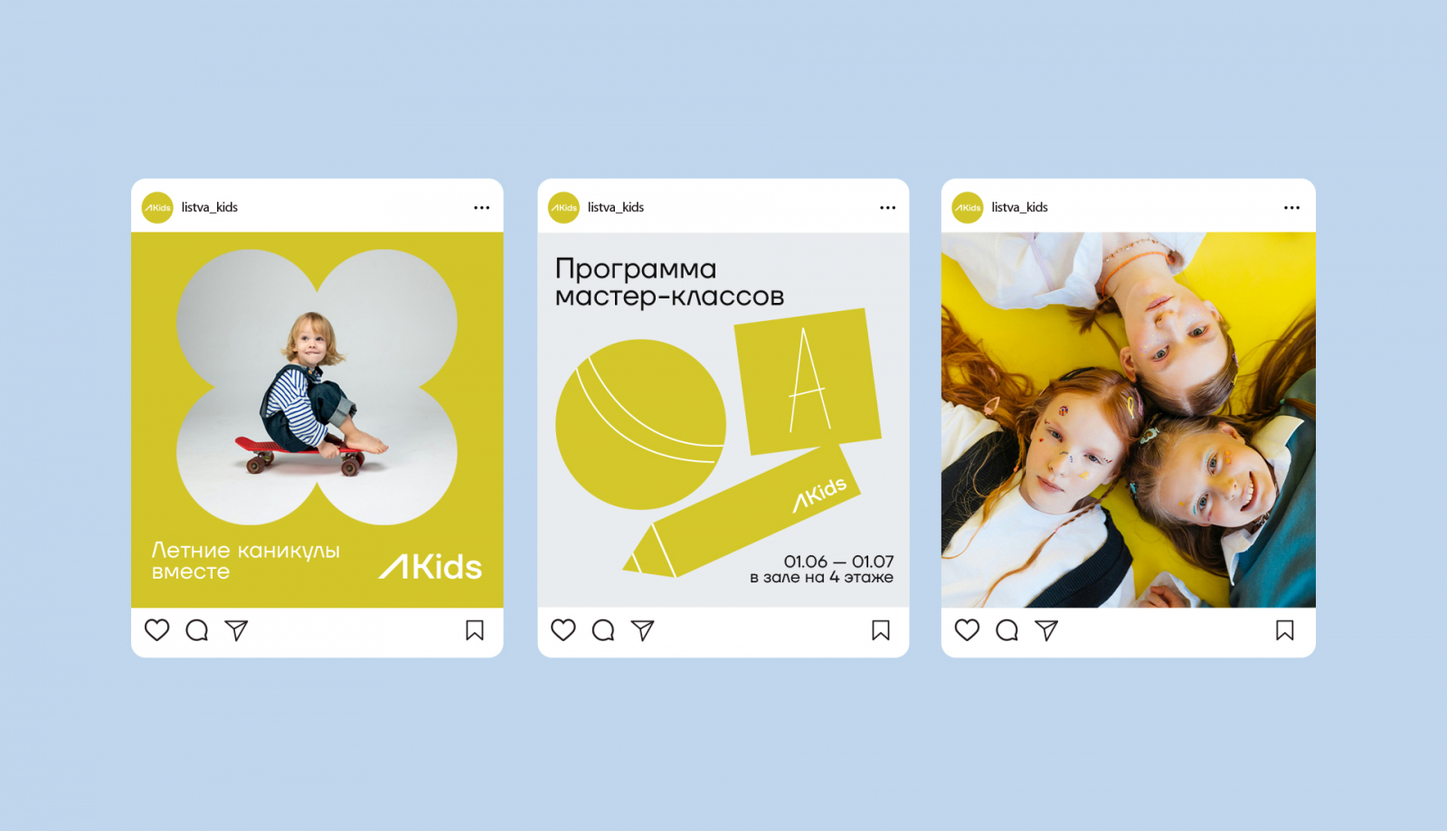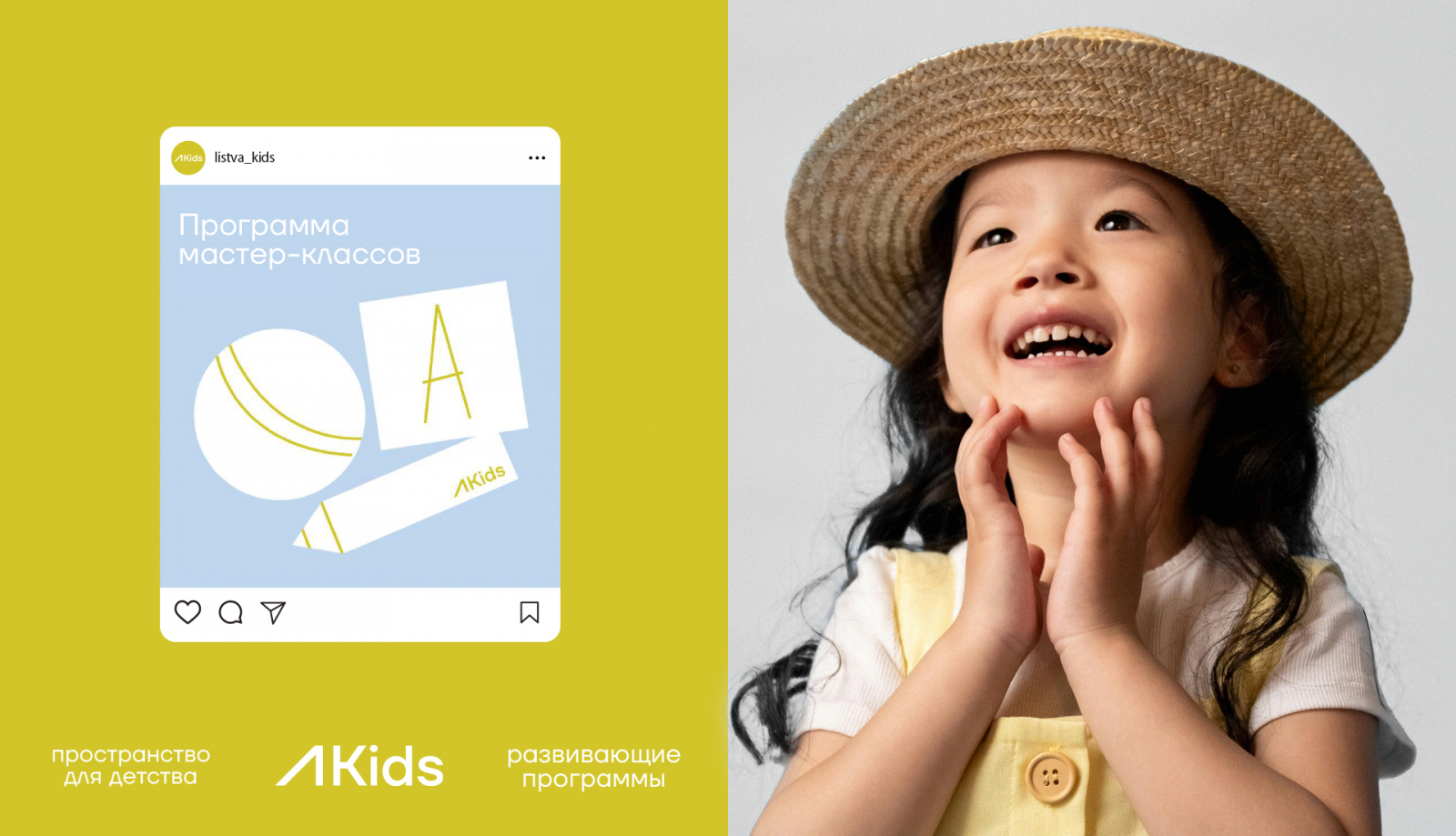 Детское направление бренда — это пространство для игры, исследования и свободы. Мы сознательно отказались от инфантилизма и стереотипной «детскости» в дизайне, сделав ставку на оформление, в котором комфортно и детям, и родителям.Основной цвет — солнечно-жёлтый, с примесью оливкового. Он яркий, но не кричащий, живой, но не утомляющий. На его фоне отлично работают как изображения, так и шрифтовые акценты. Этот цвет задаёт тон: здесь безопасно, тепло и радостно.Фотостиль — живой и честный. Мы не используем постановочные сцены: дети улыбаются, играют, иногда сосредоточены, иногда хулиганят. Это настоящее детство — в движении, в эмоциях. Родители видят не идеальную картинку, а пространство, где их ребёнок будет счастлив и в безопасности.
