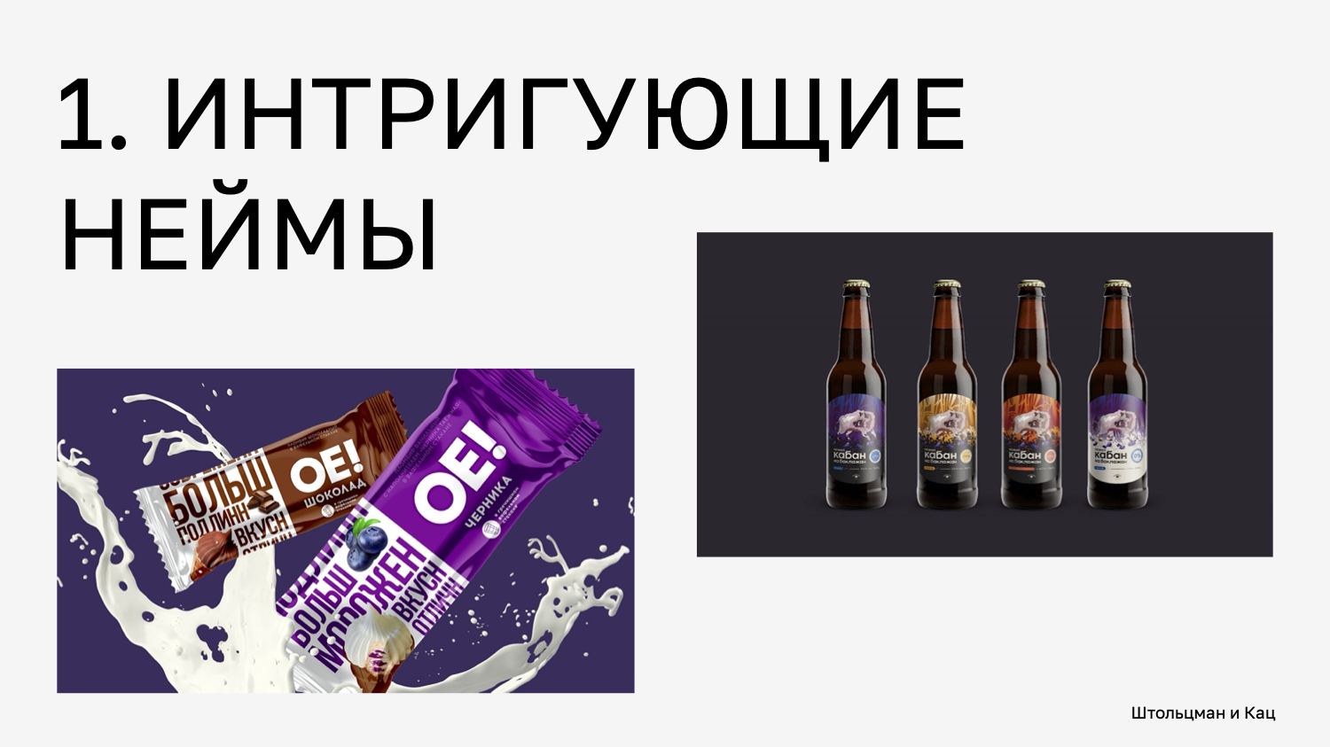 Работа на привлечение внимания. Сегодня привлечение внимания становится задачей номер один. Современный покупатель перегружен информацией, тем более, если речь заходит о продажах в сети, где обилие информации и выбор несопоставимо больше, чем в офлайн. И ради того, чтобы выделиться, сегодня стоит пожертвовать информативностью неймов, может быть, даже их запоминаемостью. Интригующие названия, эпатаж, порой целые фразы в качестве нейма, которые никто не запомнит, но которые привлекут внимание, сегодня безусловно в приоритете. Мы это видим на тестированиях марок, которые проводим едва ли не ежемесячно, видим это по продажам наших клиентов. Это работает. Причем работают немыслимые даже в недалеком прошлом неймы в виде фраз, заявлений и тому подобное. Очень длинные, абсолютно не запоминающиеся, но способные привлечь внимание.
