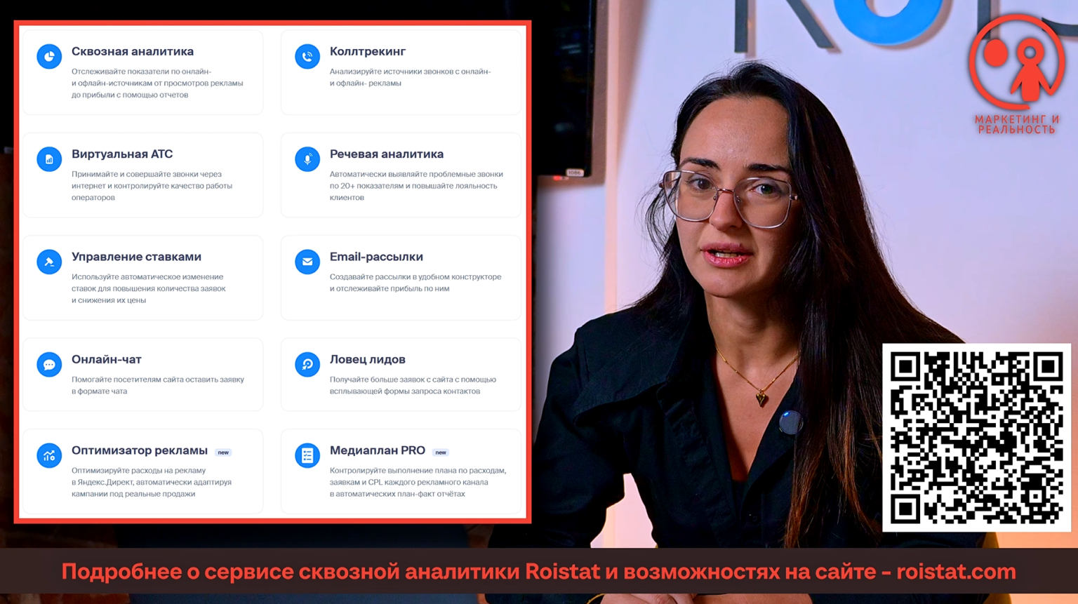 Roistat позиционируется в двух направлениях: маркетинг и контроль качества продаж и клиентского сервиса.