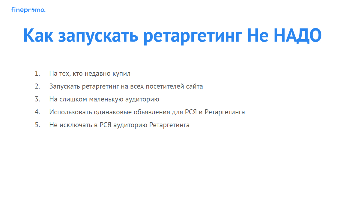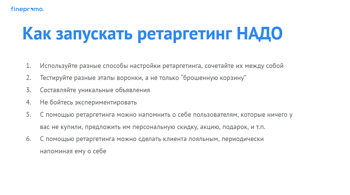 Мария Зимина, специалист отдела платного трафика в агентстве Finepromo выступила на вебинаре Yagla и рассказала, как эффективно настраивать ретаргетинг в Яндекс Директе.
