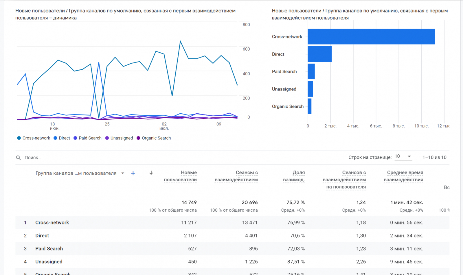 Другими словами, можно проследить, что человек делал с момента первого контакта до совершения покупки. Такая аналитика наглядно показывает, откуда приходит больше всего трафика и какой — самый качественный.