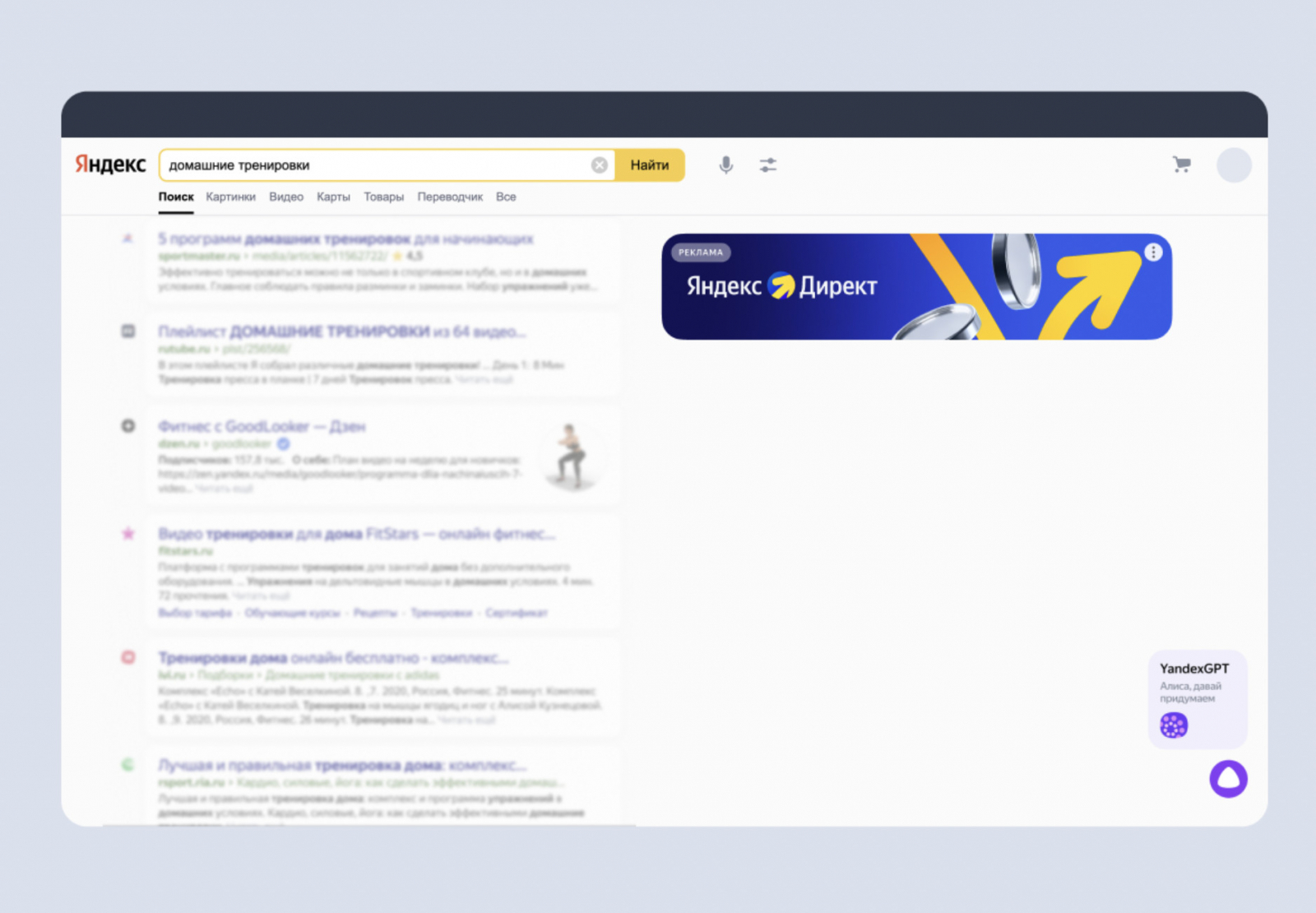 Он показывается справа от поисковой выдачи и позволяет охватить до 85 млн уникальных пользователей. Мини-баннер позволяет охватывает запросы в популярных тематиках не конкурируя с перфоманс-рекламой.