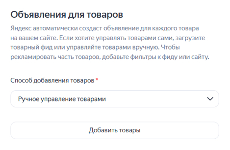 Есть несколько способов добавления товаров в рекламную кампанию: