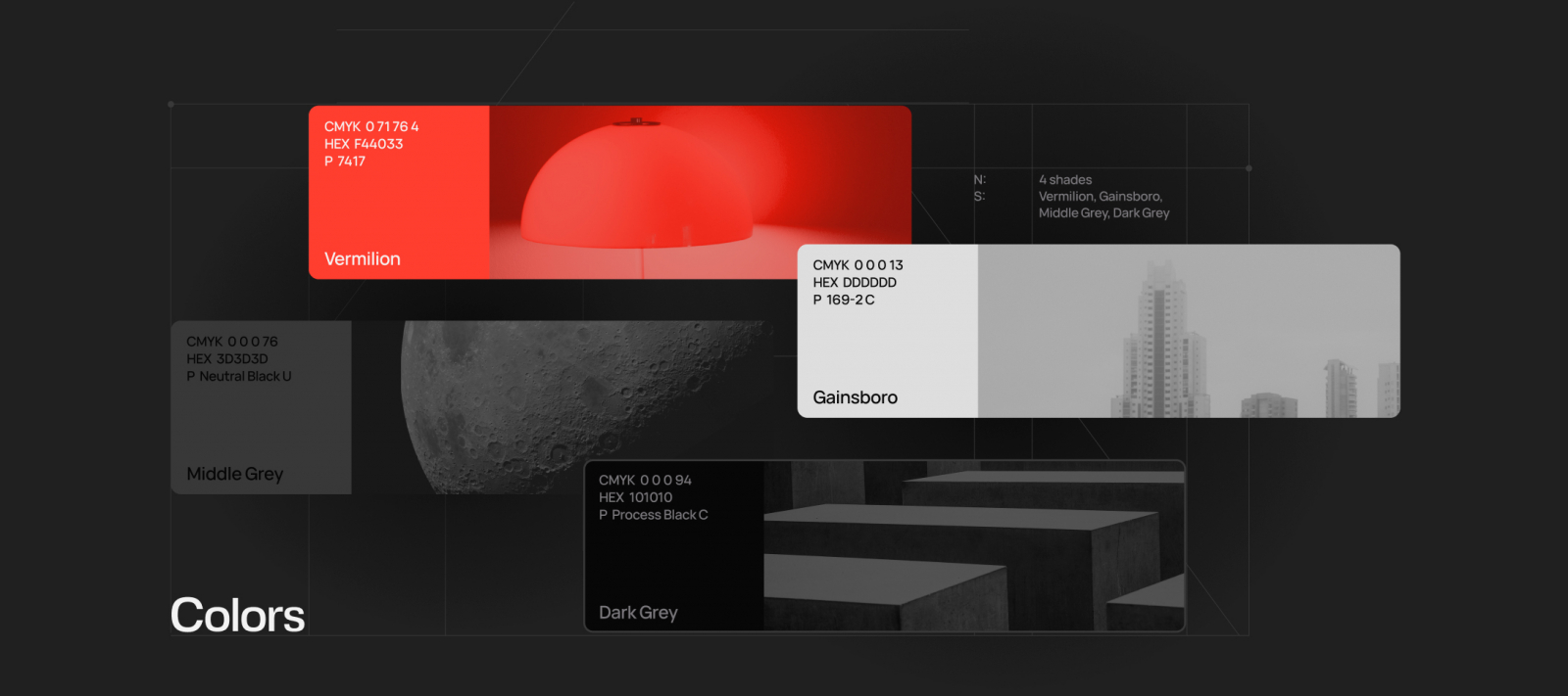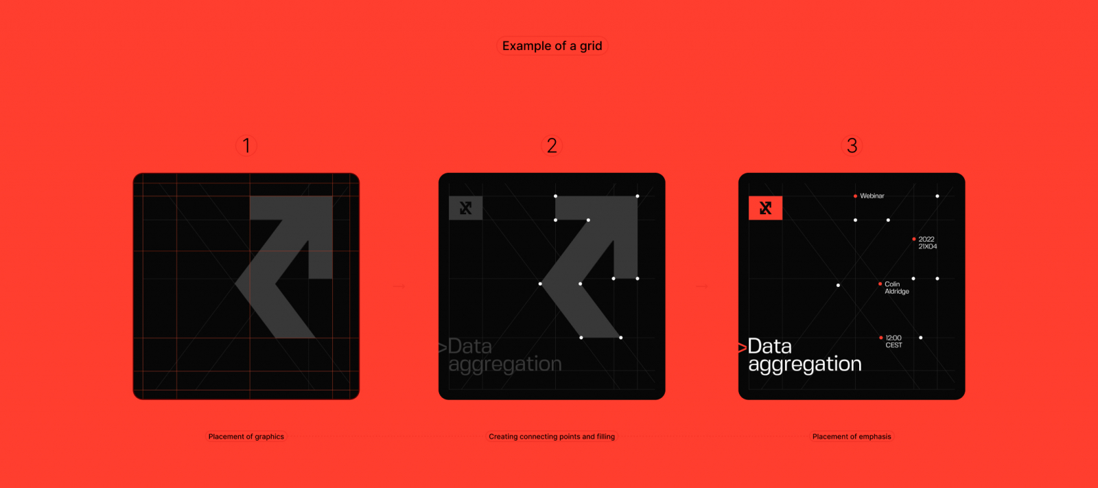 Мы использовали цвета, сильно отличные от аналогов в сфере Big Data. Это контрастное сочетание черного, белого и красного в оттенке Vermillon. Благодаря черному цвету на фоне, получилось ярко выделить текст и графические элементы айдентики.