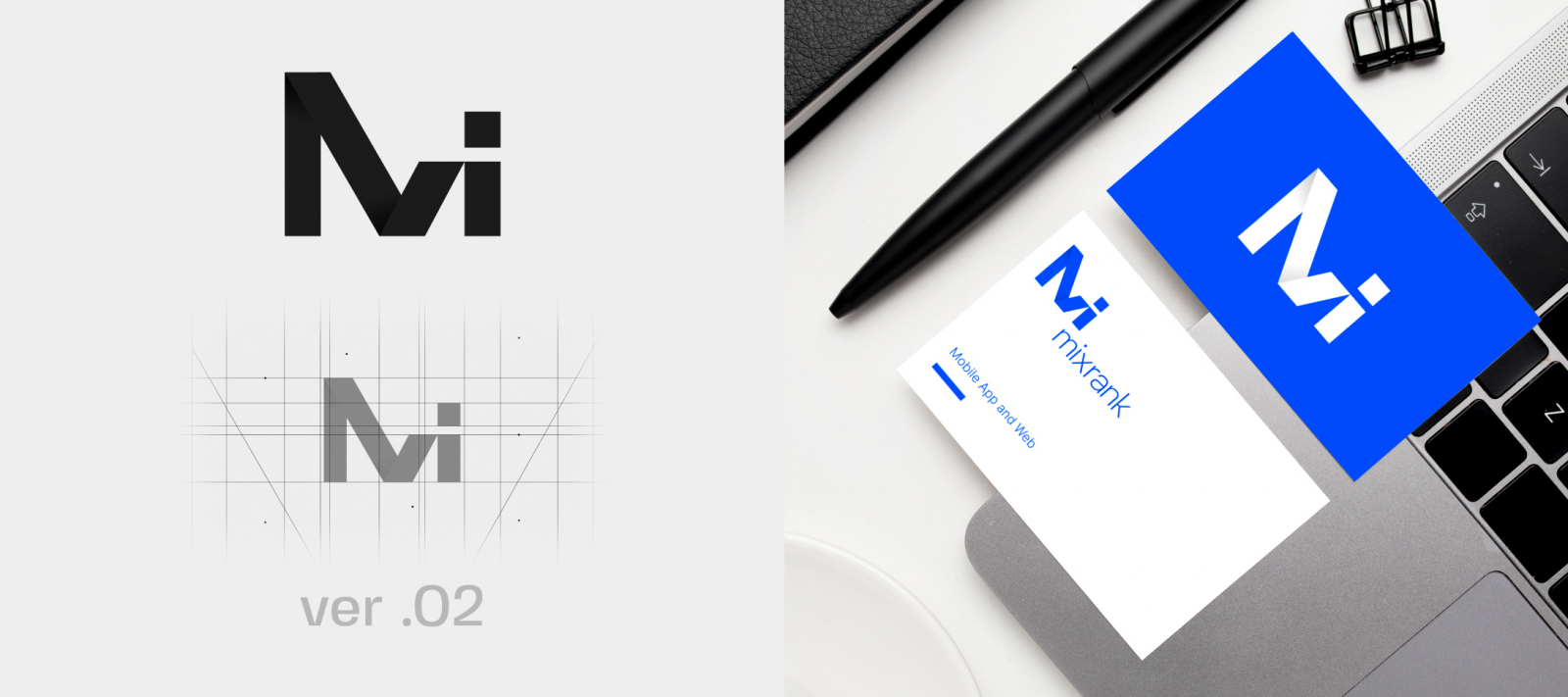 Вместе с клиентом мы остановились именно на последнем концепте. В нём динамично соединяются знак «слэш» и стрелка — атрибут работы с информацией. Кроме того, знак образует букву «Х». Её можно легко интегрировать в текстовую версию логотипа MixRank.
