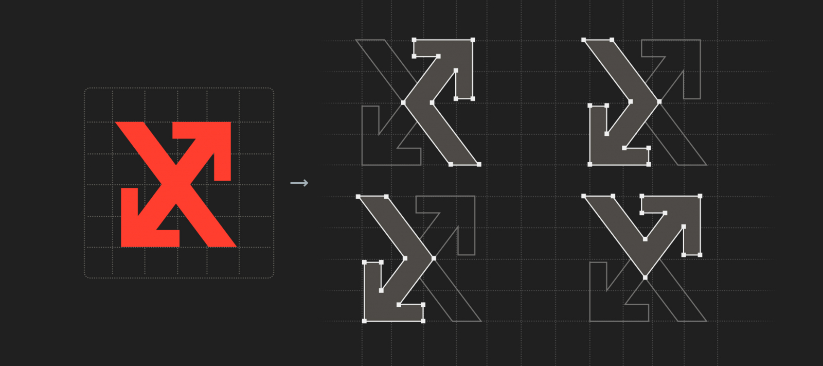 В фирменной графике мы обыграли стрелки из знаковой части логотипа. С помощью модульной сетки (о ней рассказываем ниже) можно создавать уникальную графику, соединяя линии точками и адаптируя их под разные цели.