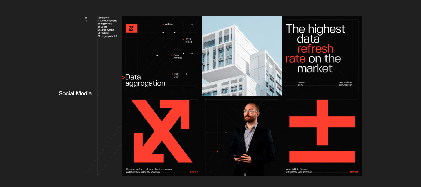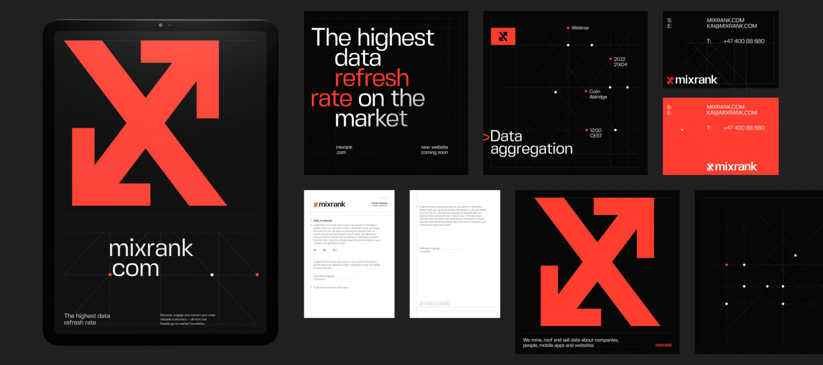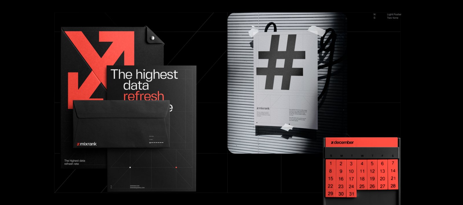 Ребята обратились к нам за созданием логотипа и айдентики. Учитывая, что в США существует огромное количество компаний сегмента Big Data — одним из условий стала разработка уникального визуального кода, который бы отразил высокую технологичность MixRank и освежил их уже существующий дизайн-образ.