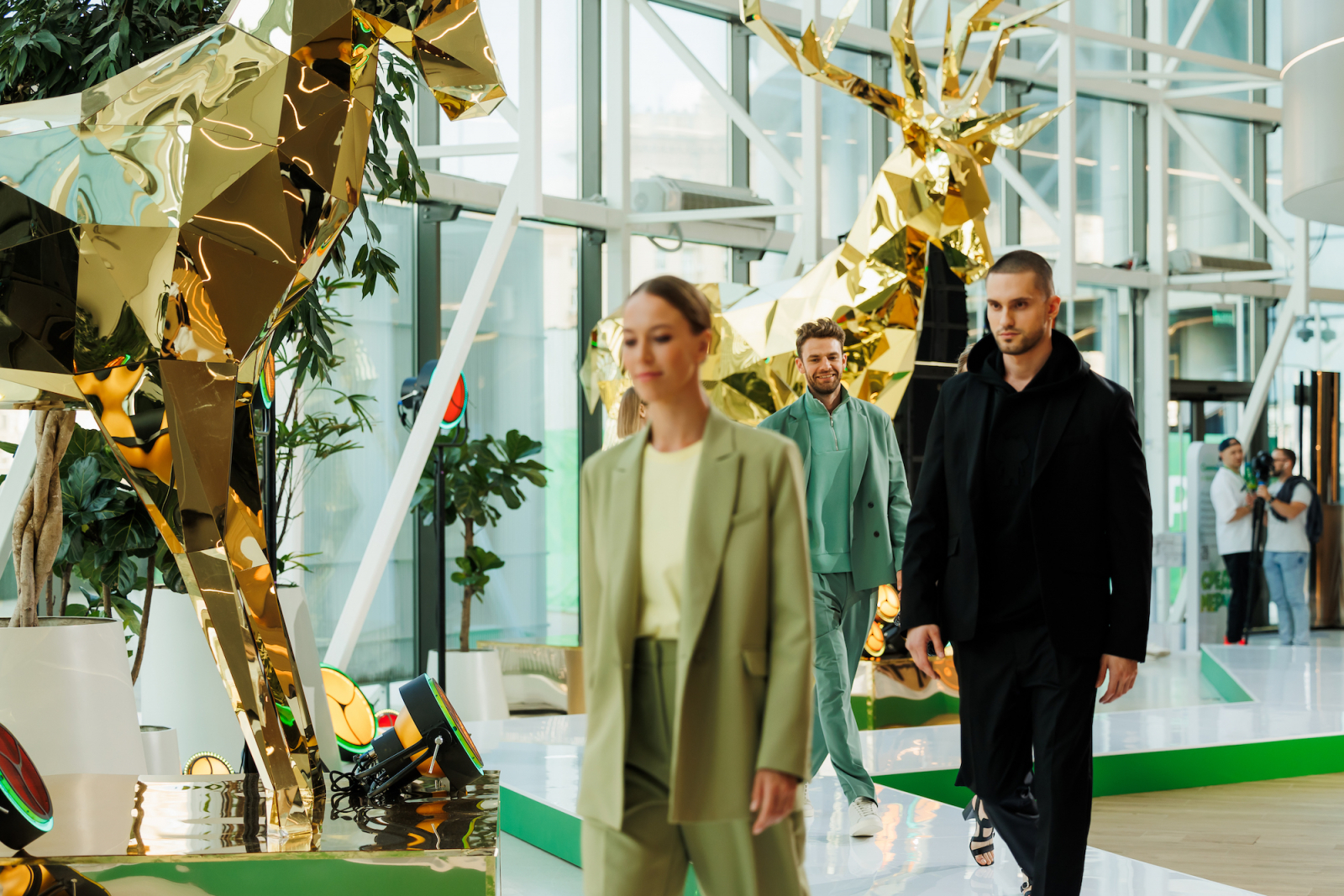 Первая Среда мерча включала в себя модные показы, обучение искусству дефиле, превращение мерча в «произведение искусства», инсталляцию с одеждой с виртуальной примерочной, где сотрудники могли примерить 3D-модель из коллекций мерча Сбера.
