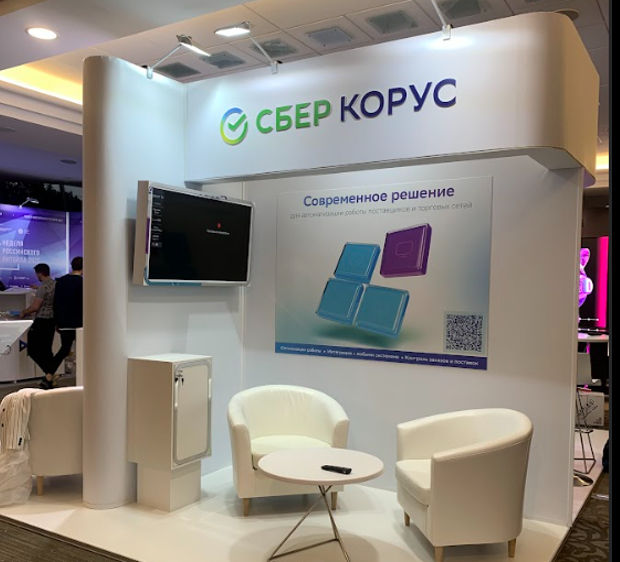 К ведущему отраслевому форуму «Неделя российского ритейла», где Сбер выступал генеральным спонсором, мы подготовили поп-ап-корнеры сразу для нескольких брендов экосистемы: СберСтрахования, СберАналитики, Сбер Бизнес Софта, Звука Бизнес и СберКоруса. В рамках партнерского пакета стенды были оформлены в современной деловой стилистике, наиболее подходящей к формату мероприятия.