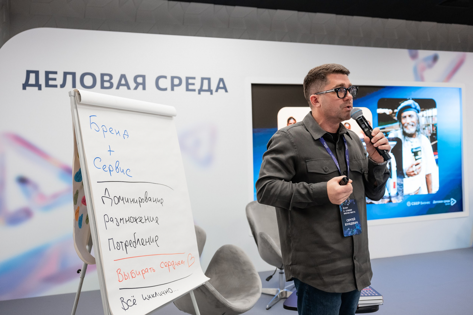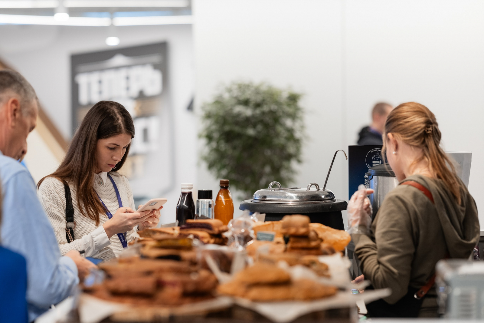 Помимо залов для деловой части и восьми промостендов здесь также разместился масштабный фуд-маркет от локальных партнеров, а градус формальности сбавлял диджей-сет, популярные интерактивы, такие как бизнес-таро, розыгрыши призов и множество нетворкинг- и промомеханик.