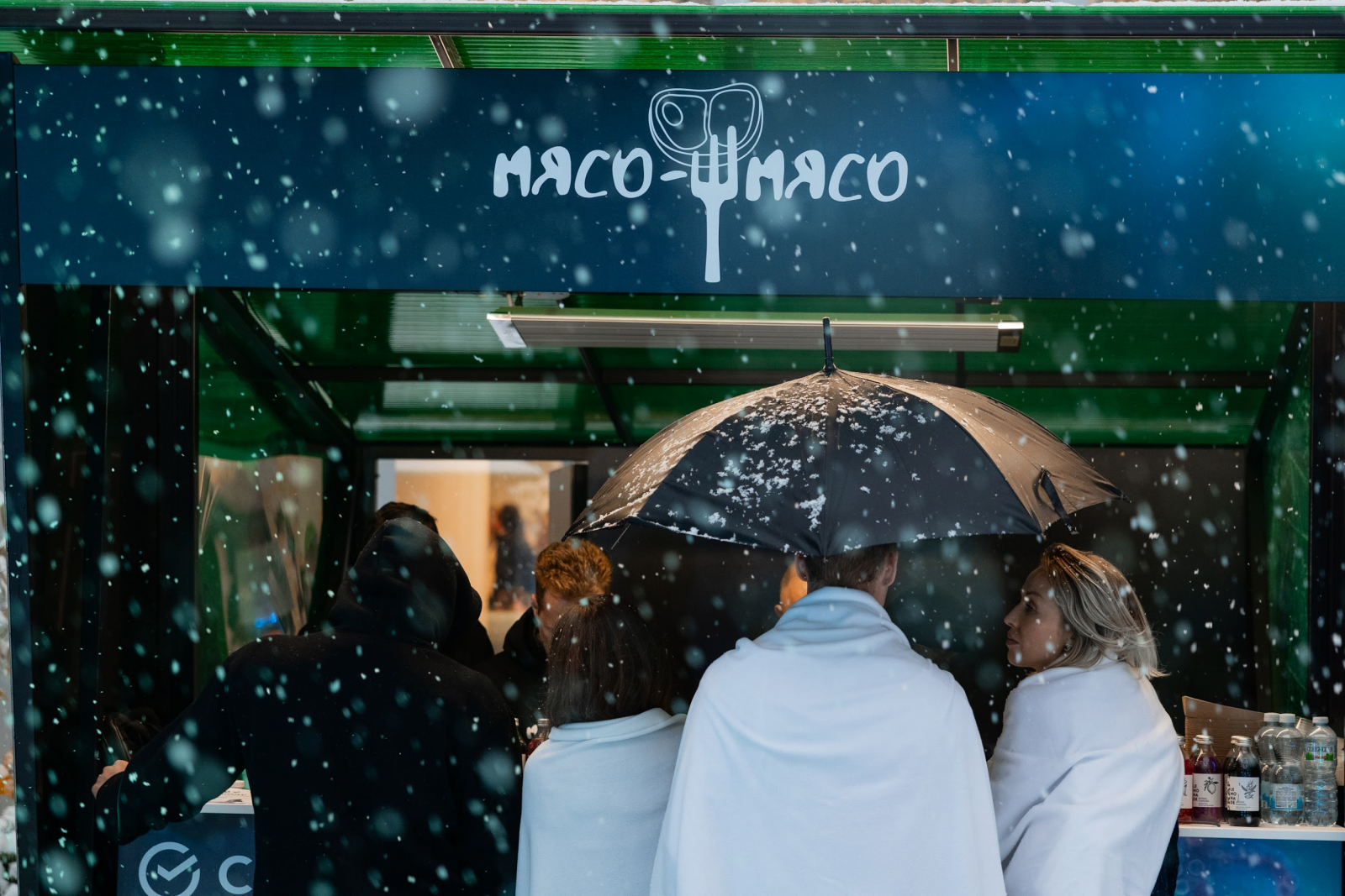 Стилизованные фестивальные киоски с перекусами и напитками располагались на всех этажах площадки, а также в прилегающей открытой зоне, где гостям предлагали не только вкусную горячую еду, но и тёплые пледы.