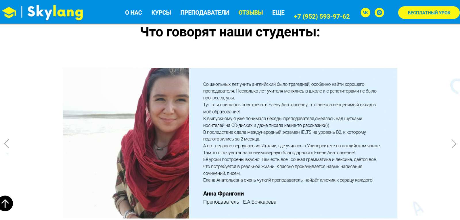 Пример: Skylang использует отзывы и фотографии реальных пользователей на своём лендинге.