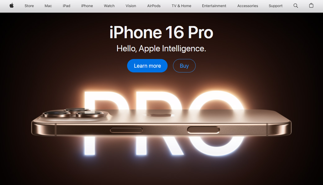 Пример: лендинг Apple всегда лаконичен, в нём минимум текста и максимум визуала.