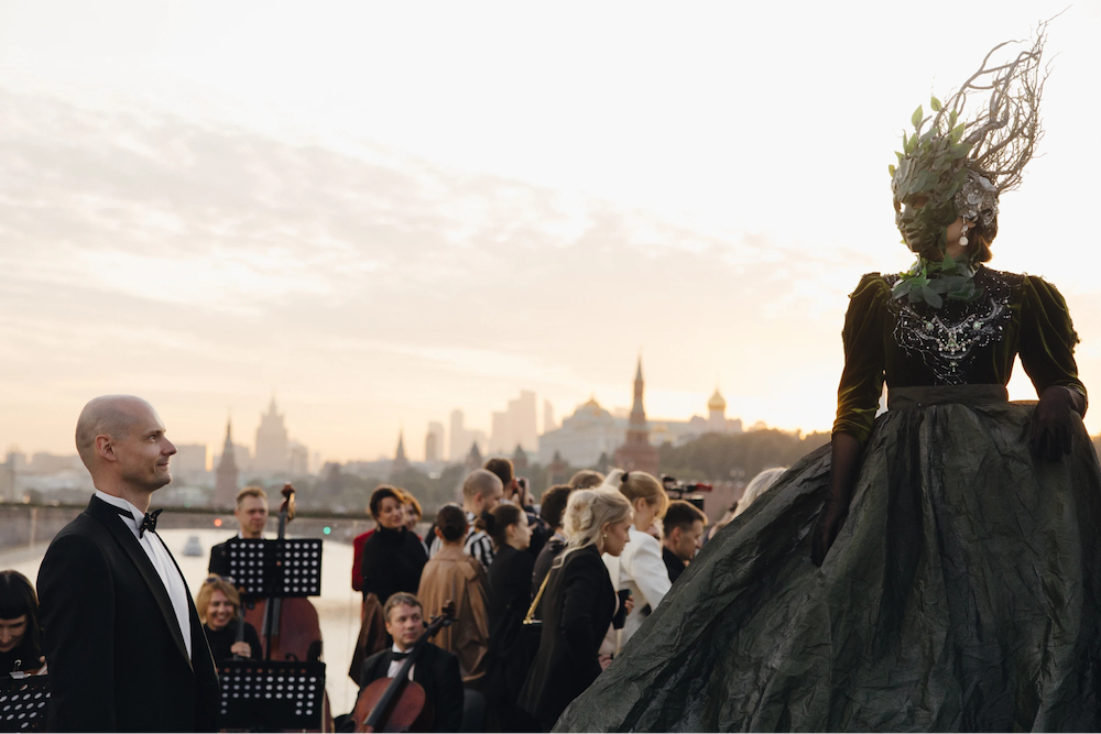 Открытое пространство Парящего моста стало символом соединения прошлого и настоящего — незавершённая опера Чайковского обрела новую жизнь в формате модного показа, где театр встретился с высокой модой и цифровыми технологиями.