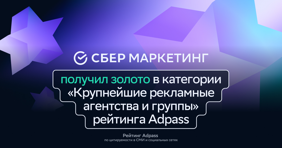 По итогам рейтинга ADPASS «Компания года», который определяет лучших игроков на рынке маркетинга и рекламы, СберМаркетинг получил «золото» в категории «Крупнейшие рекламные агентства и группы», став абсолютным лидером в 2025 году.