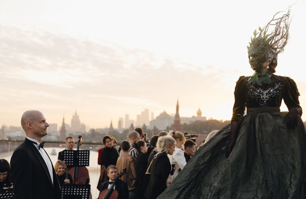 Показ трансформировался в настоящий перформанс: модели, актёры и танцовщики воссоздали фрагменты оперы на подиуме под живое исполнение симфонического оркестра Петра Дранги «DYP orchestra» и солистки Мариинского театра Цветаны Омельчук.