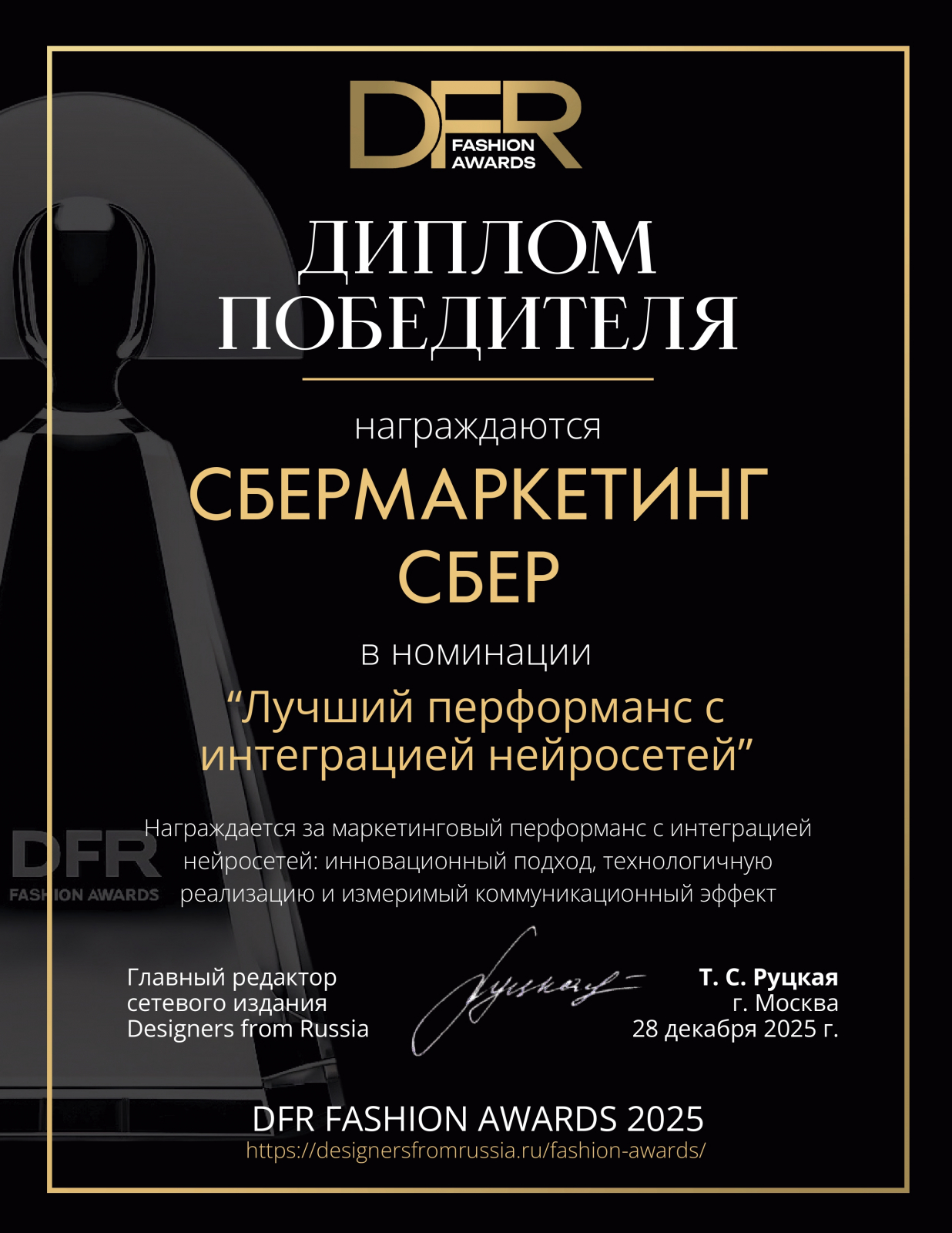 Совместный проект Сбера и СберМаркетинга одержал победу на церемонии DFR FASHION AWARDS 2025, взяв награду в номинации «Лучший перформанс с интеграцией нейросетей». Экспертное жюри премии высоко оценило инновационный подход, безупречную технологическую реализацию и коммуникационный эффект подиумного показа костюмов из оперы «Мандрагора».