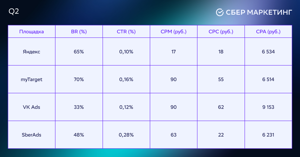 Уже на этом этапе SberAds дал самый низкий CPA среди площадок и самый высокий CTR в тесте за счет более точного попадания в аудиторию средствами данных платформы.